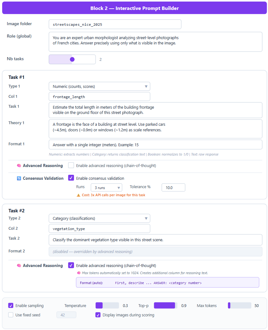 • Multi-task prompt builder. Modular prompts: role + task + theory + format. Four response types with type-specific parsers.