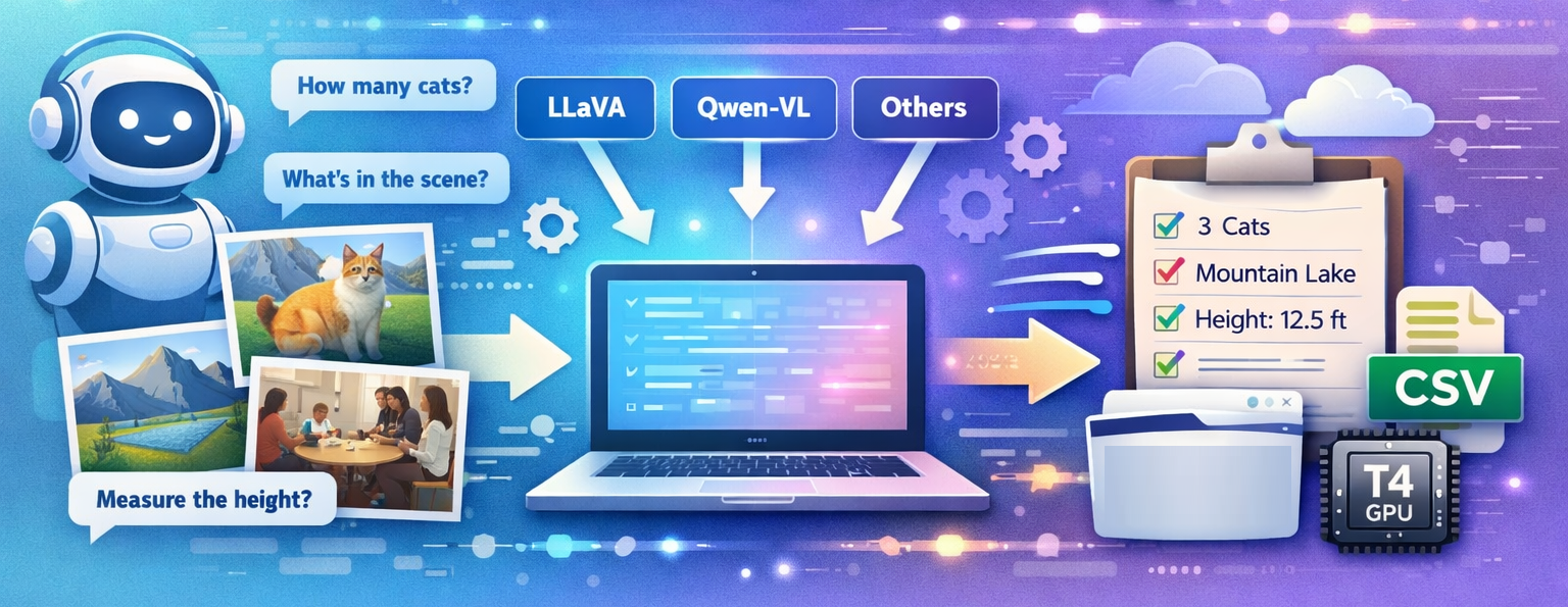 UVLM is implemented as a Google Colab notebook and runs entirely in the browser. No local installation, no infrastructure, no GPU ownership required. Models up to 34B parameters can be loaded on a free-tier T4 GPU with 4-bit quantization.