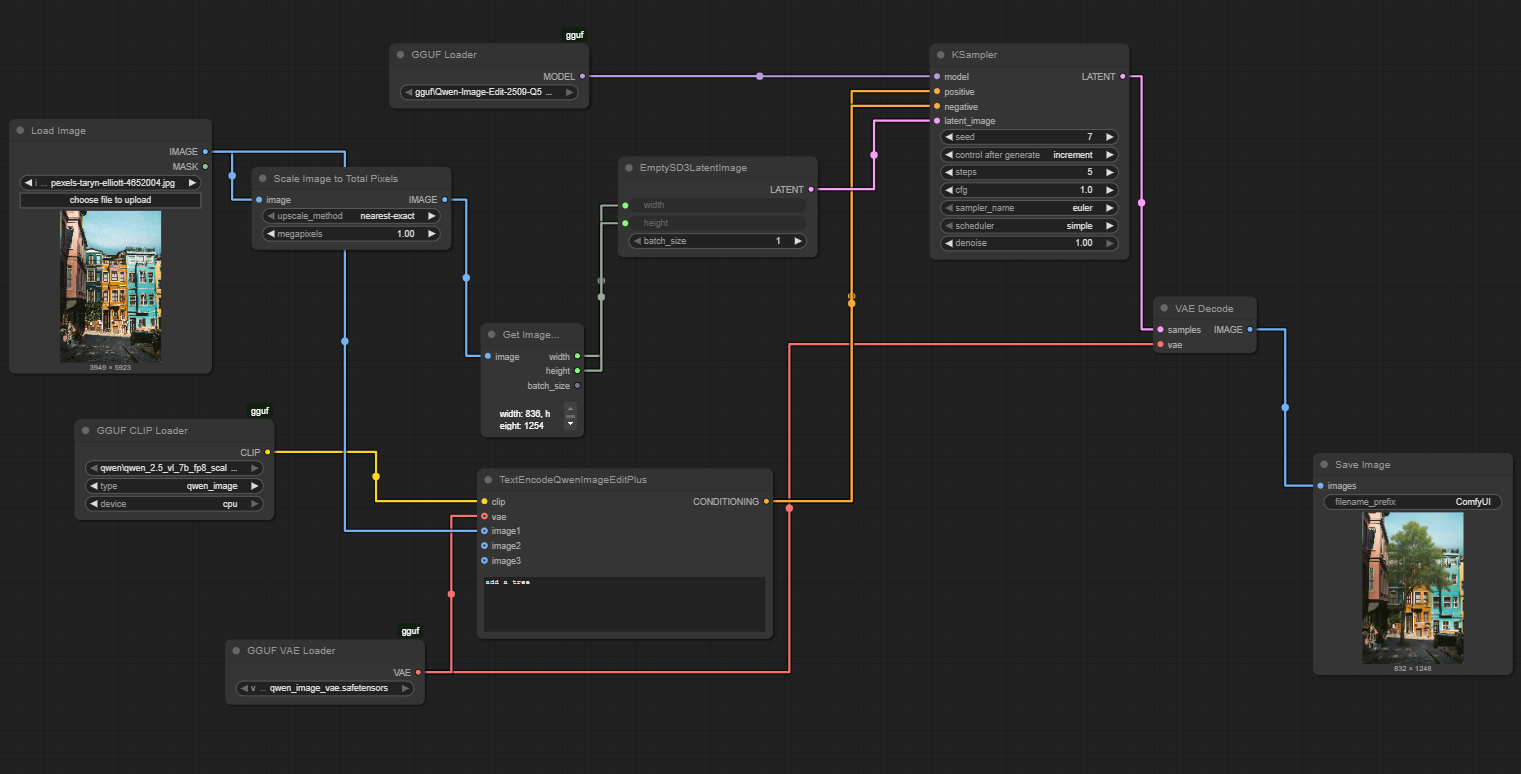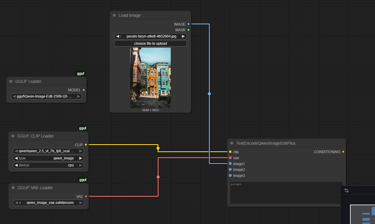 - GGUF Loader – loads the main Qwen-Image-Edit model